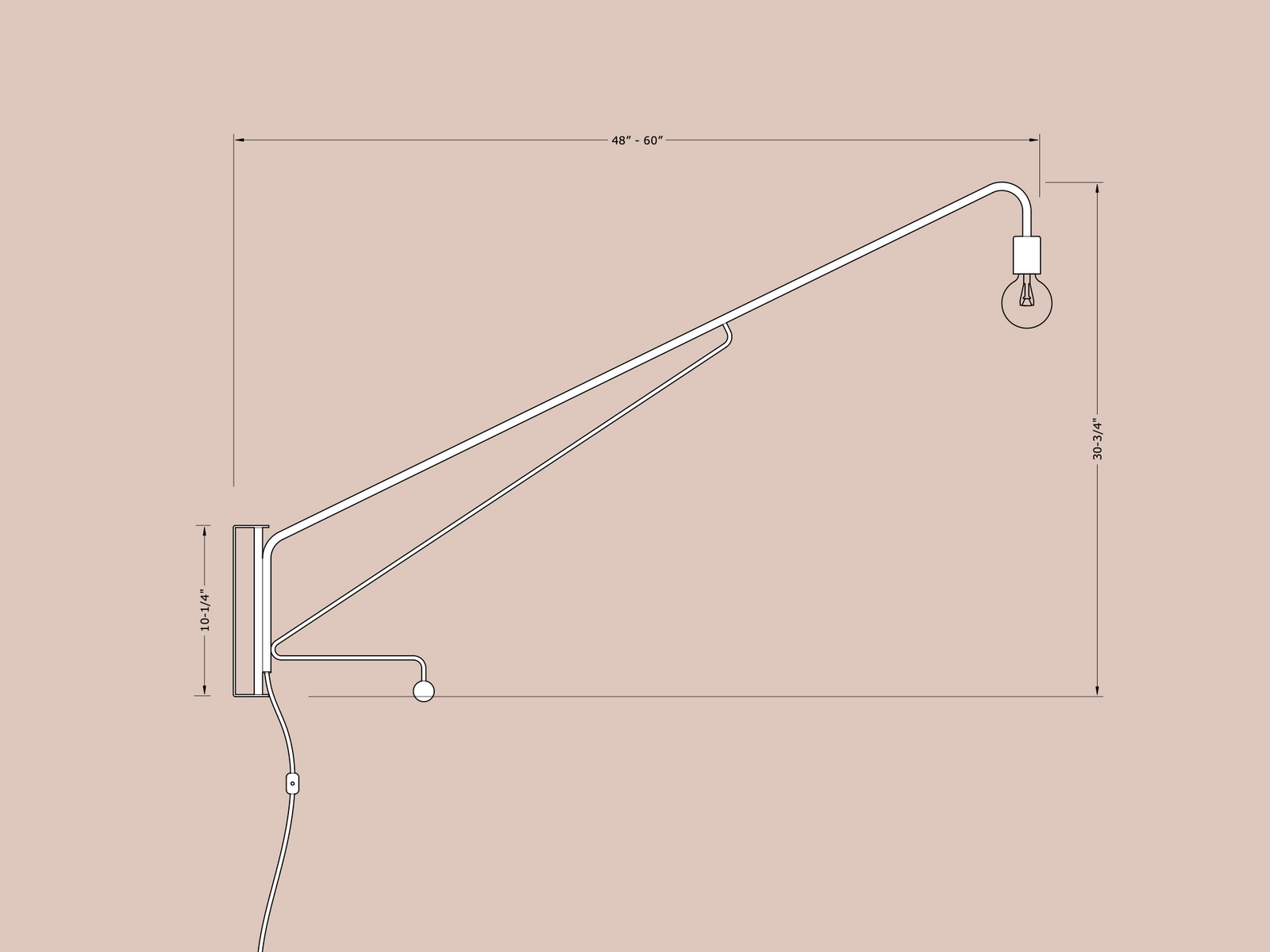 Though minimal, it's sure to draw attention in any space. A highly functional lamp that can reach the center of your room while being mounted on the wall. Our Otis light features clean lines, welded construction and inspired color options. A touch of wood adds warmth and character. This is our own personal take on a classic design. Individually handcrafted in Southern Nevada.