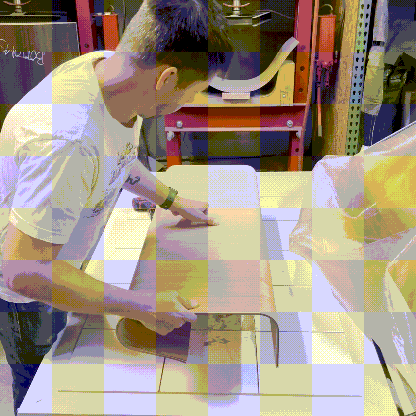 Using our own forms and machines, we press and mould plywood parts right here in our shop. One of the trickiest processes in wood-working, our obsession lead us to becoming experts. This technique has helped us solve many problems in designing our furniture. By allowing us to produce sleek and minimal designs that are also strong, plywood moulding has helped define our style.